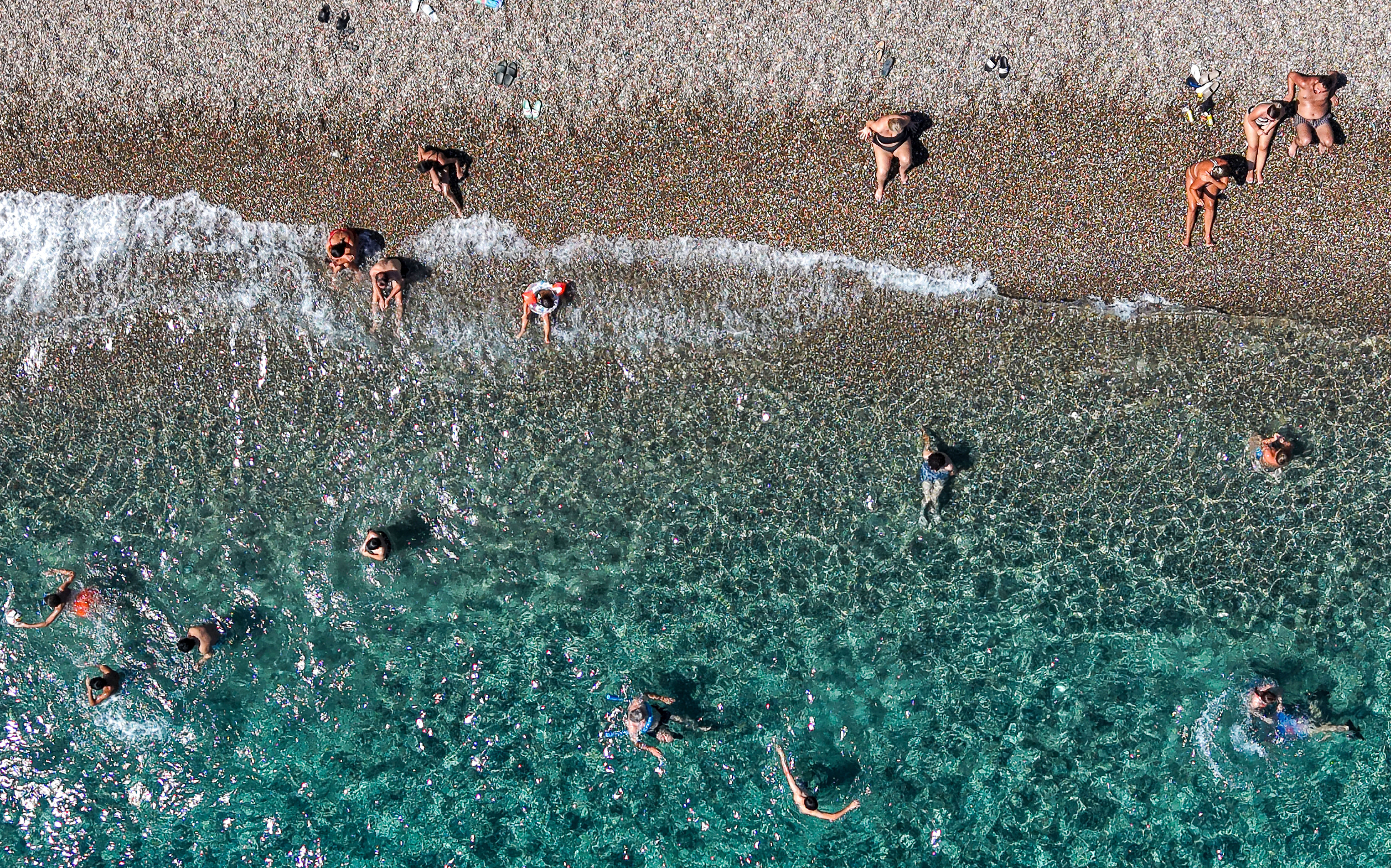 2025-2026 eğitim öğretim yılının başlamasına sayılı günler kala Antalya'da sahillerde yoğunluk yaşanmaya devam ediyor. Hava sıcaklığının öğle saatlerinde 32 dereceye ulaştığı kentte, nem oranı yüzde 80'in üzerine çıkınca sıcaklık daha yüksek hissedildi. Sıcak havadan bunalanlar ise serinlemek için soluğu sahillerde aldı. Konyaaltı Sahili'nde sıcaktan bunalanlar denize girerken, bazıları ise kumsalda güneşlenmeyi tercih etti. Okullar açılmadan önce tatilin son günlerini yaşayan çocuklar ise sahilde gönüllerince eğlendi.
