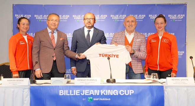 Billie Jean King Cup turnuvası kapsamında Club MegasarayOtel’de düzenlenen basın toplantısına Türkiye Tenis Federasyonu Başkanı Cengiz Durmuş, Gençlik ve Spor Bakanlığı Spor Etkinlikleri Daire Başkanı Hakan Bebek, Şahinler Holding Yönetim Kurulu Başkanı Kemal Şahin ve milli tenisçiler Zeynep Sönmez ve İlay Yörük katıldı.