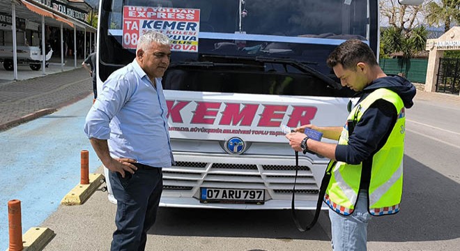Kemer'de, Ramazan Bayramı trafik tedbirleri kapsamında İlçe Jandarma Komutanlığı'na bağlı trafik jandarmaları tarafından toplu taşıma araçlarına yönelik sivil denetim yapıldı. Uygulamada trafik jandarmalarının sivil olarak bindiği 6 toplu taşıma aracı ve şoförü denetlenirken, emniyet kemeri kullanılmaması ve seyir halindeyken cep telefonu kullanımı nedeniyle 4 sürücüye toplamda 4 bin 266 lira trafik idari para cezası uygulandı.