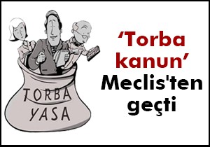 TBMM Genel Kurulu'nda görüşülen ve kamuoyunda 'Torba Kanun' tasarısı olarak bilinen İş Kanunu ile Bazı Kanun ve Kanun Hükmünde Kararnamelerde Değişiklik Yapılmasına Dair Kanun Tasarısı'nın görüşmeleri tamamlandı. Tasarı' TBMM Genel Kurulu'nda kabul edildi.