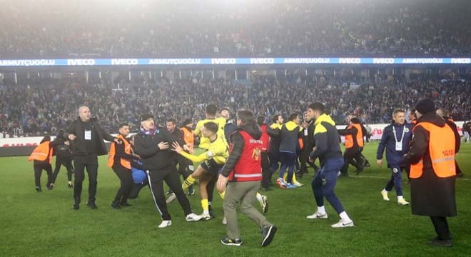 Bakan Yerlikaya'nın, sosyal medya hesabından yaptığı açıklamaya göre; maç sırasında Fenerbahçe Teknik Direktörü İsmail Kartal'a yabancı madde atan C.K., müsabaka oynanırken tespit edilip, yakalandı. Maçın ardından sahaya ilk atlayan H.Ç.'nin kaldığı otelde araştırma yapıldı. Otelden ayrıldığı tespit edilen H.Ç., Rize istikametine gittiği bilgisi üzerine yapılan çalışma sonucu Yomra ilçesinde yakalandı. Müsabaka sonunda sahaya atlayıp korner bayrağını alarak futbolculara doğru koşan E.T.'nin ise C.Ç. isimli taraftarın passoligi ile stada girdiği belirlendi. Passolig sahibi olmadığı anlaşılan E.T., Araklı ilçesinde yakalanarak, gözaltına alındı. C.Ç. de ayrıca yakalandı. Sahaya girerek Fenerbahçe kalecisi Dominic Livakovic'i darp eden kişinin ise O.B. olduğu tespit edildi. Şüpheli, Kalkınma Mahallesi'nde gözaltına alındı. Bakan Yerlikaya, gözaltına alınan şüpheliler hakkında soruşturma başlatıldığını bildirdi.