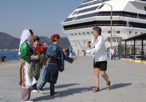 Mısır limanlarını rotalarından çıkartan firmaların gemileri Marmaris Limanı’na yanaşmaya başladı. İlk gemi bugün sabah Marmaris’e geldi. İtalyan Costa Cruise firmasına ait 'Costa Pasifica' isimli dev yolcu gemisi saat 08.00’de 2 bin 332 yolcusu ve 1031 mürettebatıyla Marmaris Limanı'na yanaştı. 'Costa Pasifica', Mısır yerine sezon boyunca 11 kez Marmaris’e gelecek. Geminin yolcuları halk oyunları gösterisiyle karşılandı ve karanfil verildi.