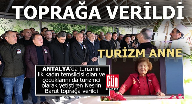 Manavgat Side Turistik Otelciler Birliği Derneği (MASTOB) Başkanı ve Barut Hotels Yönetim Kurulu Üyesi Cengiz Haydar Barut’un annesi olan Nesrin Barut, dün öğle namazına müteakip kılınan cenaze namazının ardından Side Mezarlığı’nda toprağa verildi.