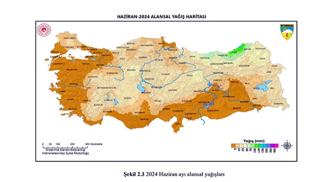 Meteoroloji Genel Müdürlüğü'nün aylık yağış değerlendirmesi verilerine göre, Türkiye geneli 2024 yılı haziran ayı yağışlarında normaline göre yüzde 65 azalma oldu. Haziran ayı normali (1991-2020) metrekareye 33,6 mm olan Türkiye'de 2023 yılı haziran ayı yağışı 58,1 mm, 2024 yılı haziran ayı yağışı 11,9 mm kaydedildi. Yağışlarda normaline göre yüzde 65, geçen yıl haziran ayı yağışlarına göre, yüzde 80 azalma meydana geldi. Türkiye genelinde son 23 yılın en düşük haziran ayı yağışı gerçekleşti.