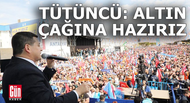 “Biz Antalya’da ne zaman AK Parti olarak belediyede iktidara geldiysek, Antalya’yı bütün ilçeleri ile beraber bir atılım dönemi, bir şahlanış dönemi bekliyordu.” diyerek sözlerini sürdüren Tütüncü, “AK Parti belediyesinin iktidarda olduğu yıllar, Antalya’nın güzel yıllarıydı. Hizmet yıllarıydı. Maalesef son 5 yıl Antalya’nın kayıp yılları oldu. Antalya’nın şimdi o geçmiş zamanlarını Antalya’ya iade etmeye hazır mıyız? 1 Nisan 2024’den itibaren Antalya’da yepyeni bir dönem başlayacak. Bu yeni dönemin adı Antalya’nın altın çağı olacak. Bütün şehir olarak kalplerimizi, yüreklerimizi birleştireceğiz, daha sonra da güçlerimizi birleştirerek gerçekleştireceğiz. Bütün Antalyalı hemşehrilerimiz Kaş’tan Gazipaşa’ya kadar buna hazır mıyız? 1 Nisan 2024’den itibaren başlayacak Antalya’nın altın çağında, başta trafik olmak üzere, imar, mülkiyet, alt yapı sorunlarının hepsini ortadan kaldıracağız.” diye konuştu.