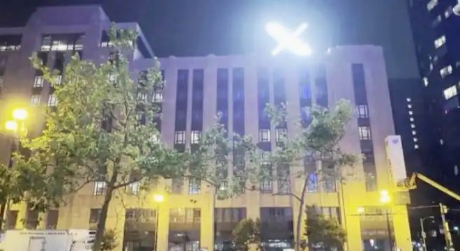 Ardından San Fransisco'daki Market Street genel merkezinin çatısına devasa bir X logosu dikti.