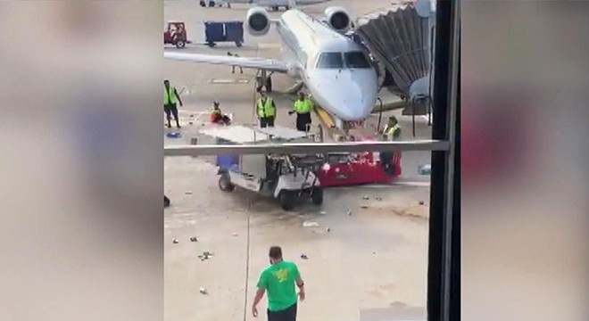 Görüntüler havalimanı terminalindeki bir yolcu tarafından kaydedildi. Görüntülerde, üzerinde sürücüsü bulunmayan yemek servis aracının geri geri giderek, bulunduğu alanda tur attığı görülüyor. Her dönüşü sırasında park halindeki uçağa yaklaşan araca, apronda olan bagaj taşıma aracının yaklaştığı görülüyor. Bagaj taşıam araç sürücüsü, uçağa çarpmak üzere olan yemek servis aracına çarpışor ve onu deviriyor.