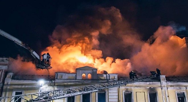 Binanın ikinci katında başlayan yangının kısa süre içinde çatıya sıçradığı, çatıda bulunan sanayi tüplerinin yangının büyümesine yol açtığı belirtildi.