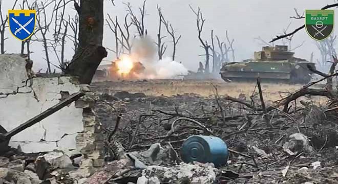 Ukrayna Savunma Bakanlığı’ndan yapılan açıklamada, “Ukrayna’ya ait bir M2A2 Bradley IFV, bir Rus BMP-2'yi yakın mesafeden imha ediyor” denildi. Donetsk bölgesindeki çatışamalardan olduğu ifade edilen görüntülerde, M2A2 Bradley’in ateş açarak Rus BMP-2 tipi askeri araca yaklaştığı, ardından Rus BMP-2’nin infilak ettiği görüldü.
