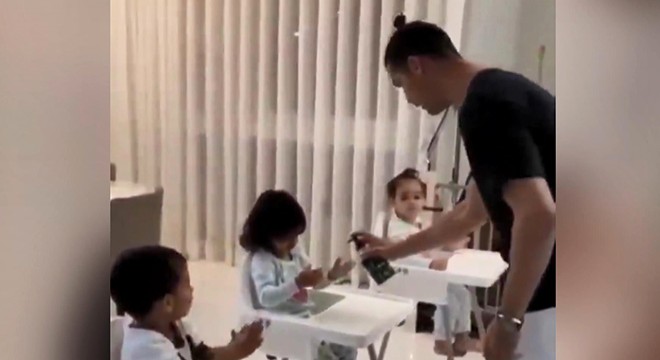 Portekizli yıldız futbolcu Ronaldo, örnek olması için çocuklarının ellerini dezenfekte ettiği görüntüleri 208 milyon takipçisi bulunan sosyal medya hesabından yayınladı. Kendini ve ailesini karantinaya alan Juventus’un yıldız futbolcusu Ronaldo, sosyal medya hesabından koronavirüs salgınına karşı bireysel olarak alınması gereken tedbirler hakkında hayranlarını bilgilendiriyor.