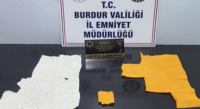 Burdur Cumhuriyet Başsavcılığı koordinesinde, İl Emniyet Müdürlüğü ekiplerince uyuşturucu madde ticareti yapan ve kullanan şahısların yakalanmasına yönelik çalışmalar devam etti. Polisin kent merkezinde şüphe üzerine durdurduğu N.C.Ö. ile L.B.'nin üst aramasında 7 bin 250 kullanımlık sentetik kannabinoid enjekte edildiği değerlendirilen kağıt parçası ele geçirildi. Emniyetteki işlemlerinin ardından adliyeye sevk edilen N.C.Ö. ve L.B., 'uyuşturucu veya uyarıcı madde imal ve ticareti' suçundan tutuklanarak Burdur E Tipi Kapalı Cezaevi'ne götürüldü.