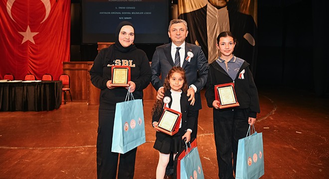 İl Milli Eğitim Müdürlüğü tarafından hazırlanan program, saygı duruşu ve İstiklal Marşı’nın okunmasıyla başladı. Ardından İl Milli Eğitim Müdürlüğü tarafından 'Türk’ün Özü, Akif’in Sözü' konulu resim, şiir ve kompozisyon yarışmalarında dereceye giren öğrencilere ödülleri takdim edildi. Vali Hulusi Şahin, yarışma sonucu dereceye giren resim dalı birincisi Kepez Yüzbaşı Mustafa Ertuğrul İlkokulu öğrencisi Eylül Beyza Şeker, şiir dalı birincisi Varsak Ortaokulu öğrencisi Nehir Narçin ve kompozisyon dalı birincisi Antalya Erünal Sosyal Bilimler Lisesi öğrencisi İrem Cengiz’e plaketlerini takdim etti.