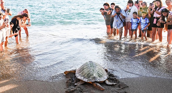 Konuşmanın ardından caretta carettalar izleyenlerin alkışları arasında denizle buluştu.