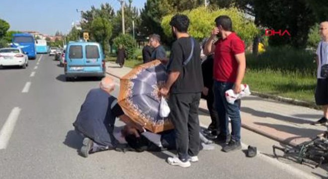 Kaza, Yunusemre Mahallesi’nde meydana geldi. Afganistan uyruklu Cevahirşah Pekiri'nin kullandığı bisiklete, 3 tekerlekli motosiklet çarptı. Motosiklet sürücüsü kaçarken, Pekiri ağır yaralandı. 112 Acil Çağrı Merkezi'ne haber verilirken, çevredekiler Pekiri'nin 30 dereceyi aşan sıcaktan etkilenmemesi için başında şemsiye tuttu. Pekiri, ambulansla Kütahya Şehir Hastanesi'ne kaldırılırken, durumunun ağır olduğu belirtildi. Polis, kaçan motosiklet sürücüsünü yakalamak için çalışma başlattı. (DHA)