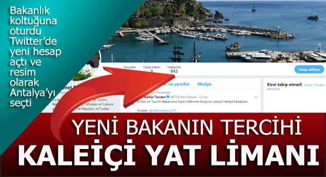 Yeni bakanın nereli olduğu kesin olmamakla birlikte twitter’da kullandığı Kaleiçi fotoğrafı da gösteriyor ki, Antalya’ya olan ilgisi kesin… Bu tercihin, turizmin başkenti Antalya olduğu için mi, yoksa memleketi Antalya olduğu için mi, işte o kesin değil.