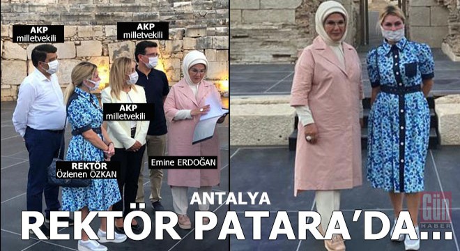 Emine Erdoğan'a, Patara ziyareti sırasında Çevre ve Şehircilik Bakanı Murat Kurum ve eşi Şengül Kurum'un yanı sıra Çevre ve Şehircilik Bakan Yardımcısı Prof. Dr. Mehmet Emin Birpınar, Kültür ve Turizm Bakan Yardımcısı Nadir Alpaslan, Kültür ve Turizm Bakanı Mehmet Ersoy'un eşi Pervin Ersoy, Akdeniz Üniversitesi Rektörü Prof. Dr. Özlenen Özkan, Patara Kazı Başkanı Prof. Dr. Havva İşkan Işık ve protokol üyeleri eşlik etti.