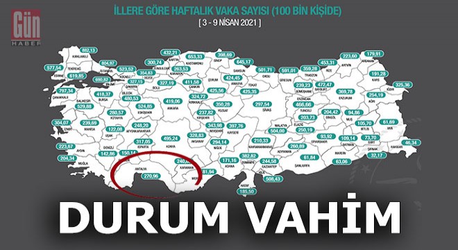 Şubat'ın ortasında yüz binde 78 olan Antalya'da bu oran yeni tabloda 270'e çıktı.