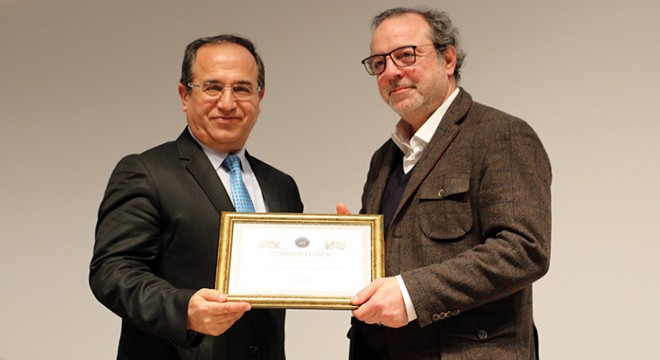 Soru-cevap şeklinde ilerleyen söyleşi sonunda usta yönetmene, Prof. Dr. Ahmet Ayhan tarafından teşekkür belgesi ve plaket takdim edildi.