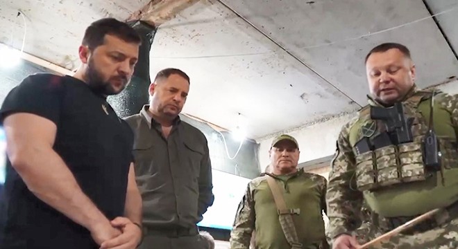 Ukrayna Devlet Başkanı Volodimir Zelenski, dün Donetsk ve Zaporijya bölgelerini ziyaret etti. Bölgede konuşlanmış askerlerle görüştü ve sahadan gelen raporları değerlendirdi.