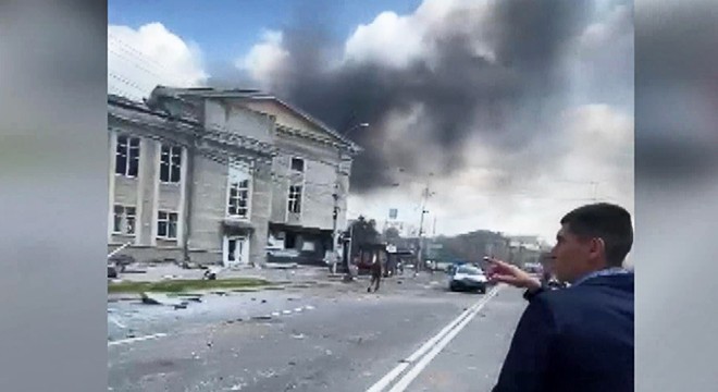 Zelenski’nin paylaştığı görüntüde, patlamanın meydana geldiği bölgeden siyah dumanların yükseldiği, itfaiye ekiplerinin çıkan yangına müdahale ettiği görüldü.
