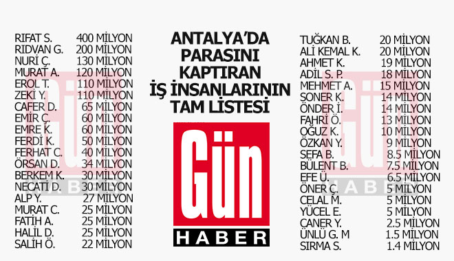 Lafı uzatmadan parasını kaptırdığı söylenen isimleri vereyim.